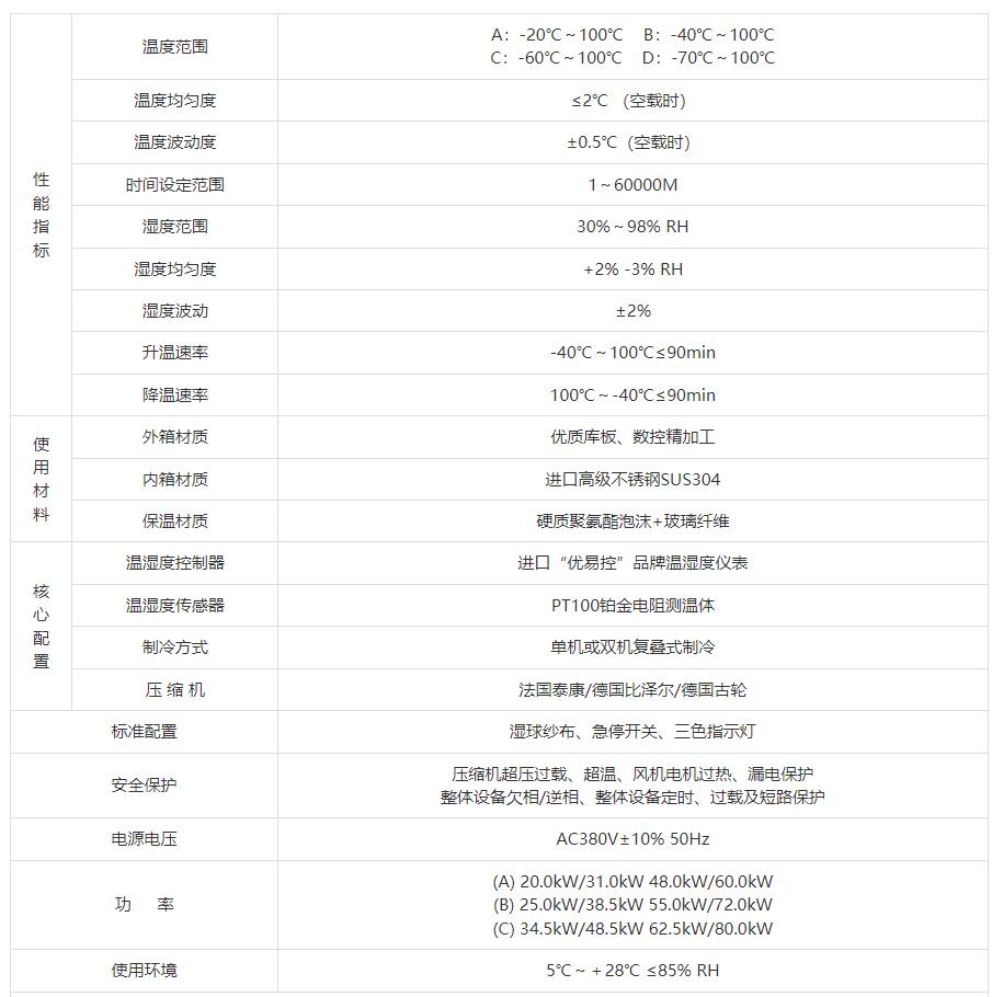 | 降溫速率 | 100℃~-40℃≤90min | ||||||