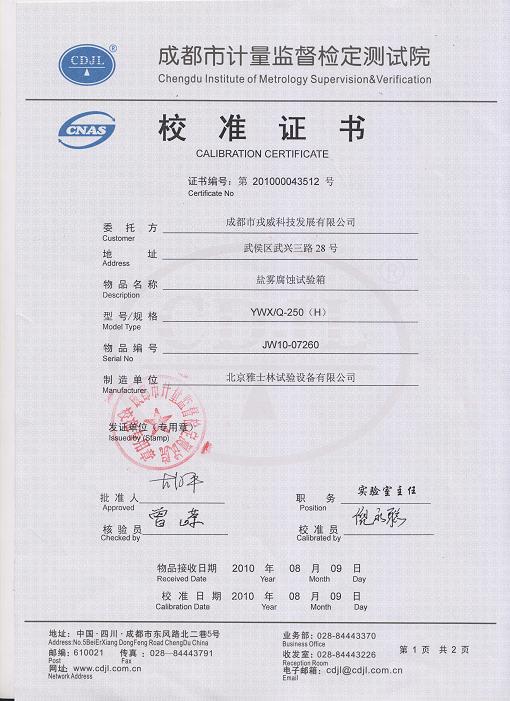 鹽霧腐蝕試驗箱校準證書-成都計量院-戎威科技