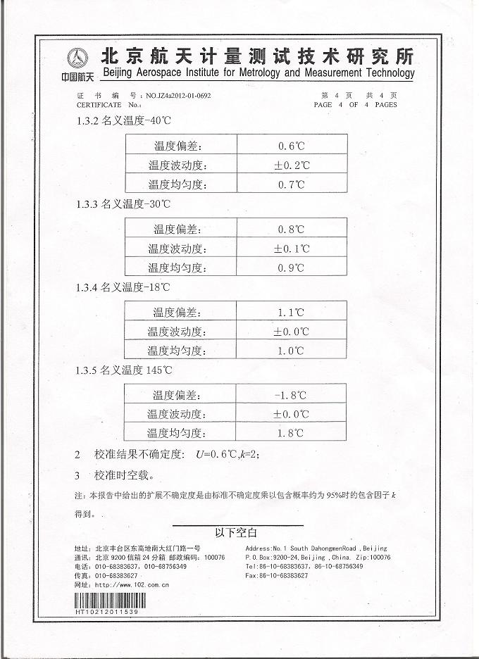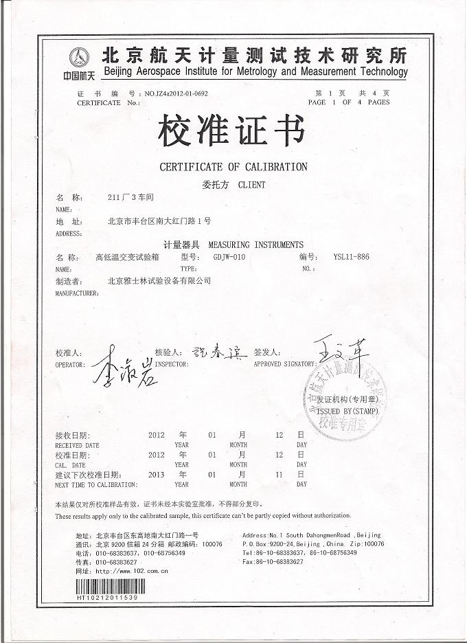 >>高低溫交變?cè)囼?yàn)箱校準(zhǔn)證書-航天計(jì)量-航天一院