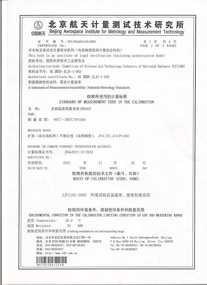 ·高低溫交變?cè)囼?yàn)箱校準(zhǔn)證書-航天計(jì)量-航天一院