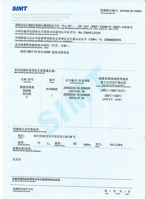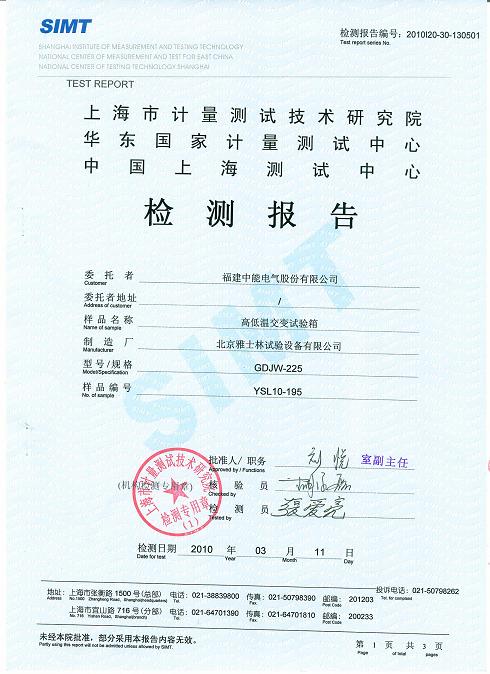 >>高低溫交變試驗箱檢測報告-上海計量院-中能電氣