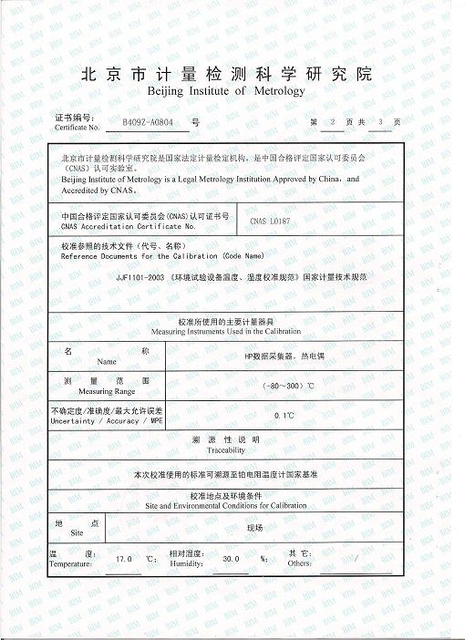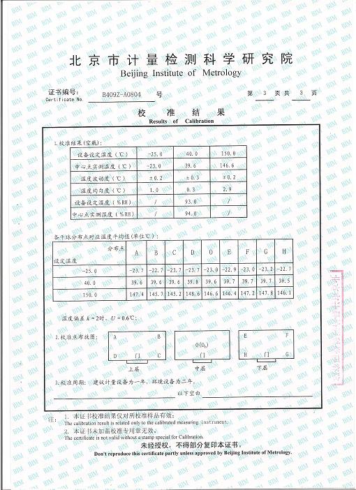 高低溫交變濕熱試驗箱校準(zhǔn)證書-北京計量院-拉特激光
