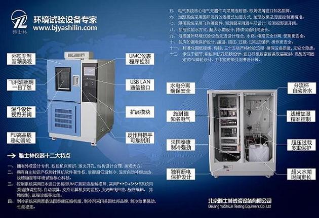 寶劍鋒從磨礪出,梅花香自苦寒來(lái)。雅士林儀器持續(xù)創(chuàng)新,開發(fā)最前沿的測(cè)試技術(shù),使雅士林的產(chǎn)品肯有更加大的生命力。雅士林儀器定位于中高端客戶群,高品質(zhì)、高性能高低溫交變濕熱試驗(yàn)箱系列的產(chǎn)品特點(diǎn): 1、擁有外觀設(shè)計(jì)專利,數(shù)控機(jī)床剪折、激光開孔,結(jié)構(gòu)設(shè)計(jì)合理,新穎美觀。 2、擁有自主知識(shí)產(chǎn)權(quán)和計(jì)算機(jī)軟件著作權(quán),掌握超低溫制冷、溫度自動(dòng)補(bǔ)償加熱、淺槽加濕等環(huán)境試驗(yàn)核心科技。 3、控制系統(tǒng)采用日本進(jìn)口優(yōu)易控UMC系列7英寸高清真彩液晶觸摸顯示屏,溫度控制采用P•I•D+S•S•R系統(tǒng)同頻道協(xié)調(diào)控制,自動(dòng)演算的功能,支持電腦實(shí)時(shí)監(jiān)控、歷史曲線回放、程序編輯、遠(yuǎn)程診斷等功能。 4、制冷系統(tǒng)采用原裝法國(guó)泰康壓縮機(jī)組,制冷劑采用美國(guó)杜邦品牌,制冷效果強(qiáng)勁,性能穩(wěn)定。 5、電氣系統(tǒng)核心電氣元器件均采用施耐德、歐姆龍等進(jìn)口知名品牌。 6、加濕系統(tǒng)采用國(guó)際流行的淺槽式加濕方式,加濕效果及濕度控制更精準(zhǔn)。 7、照明系統(tǒng)采用飛利浦套件,觀測(cè)窗采用漏斗形設(shè)計(jì),觀測(cè)視野更開闊。 8、抽屜式加水方式,超大水箱設(shè)計(jì),持續(xù)試驗(yàn)時(shí)間更長(zhǎng)。 9、沿襲國(guó)外環(huán)境試驗(yàn)設(shè)備先進(jìn)設(shè)計(jì)理念,水路、電路完全分離,使用更安全。 10、獨(dú)有的漏電保護(hù)設(shè)計(jì),超溫、超壓、過(guò)載、過(guò)電流保護(hù),操作更安全。 11、標(biāo)準(zhǔn)化圖紙接線、焊接,三十五項(xiàng)嚴(yán)格檢驗(yàn)流程,確保設(shè)備質(zhì)量,無(wú)安全隱患。 12、專注于細(xì)節(jié),引線測(cè)試孔防銹設(shè)計(jì)、進(jìn)口硅橡膠密封條雙層密封、高品質(zhì)可固定式PU腳輪設(shè)計(jì)、工作室底部引流槽設(shè)計(jì)等。 全國(guó)免費(fèi)服務(wù)電話:4006 400 998 |