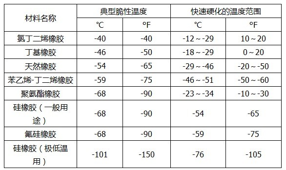 通常對(duì)材料規(guī)定一個(gè)低溫使用范圍,如下表: