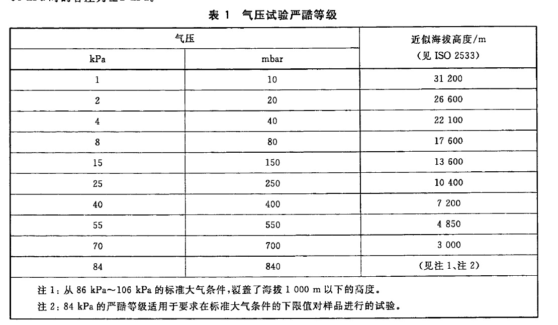 上圖是GB/T2423.21-2008中規(guī)定的氣壓試驗(yàn)等級。地球大氣受重力作用,離地面越高,空氣越稀薄,氣壓也就越低。在標(biāo)準(zhǔn)大氣條件下,海平面氣壓約為 101.3kPa 。隨著海拔上升,氣壓呈非線性下降趨勢。這是因?yàn)榇髿獠⒎蔷鶆蚍植迹酵呖眨諝夥肿訑?shù)量越少,分子撞擊物體表面產(chǎn)生的壓力也就越小。